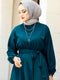 Beli Kuşaklı Tesettür Elbise 100MD-10528 Petrol