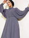 Yarım Düğmeli Balon Kol Kemerli Elbise Füme