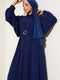 Yarım Düğmeli Balon Kol Kemerli Elbise Lacivert