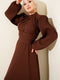 Kolları Piliseli Kuşaklı Abiye Elbise Kahve