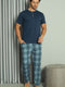 Üç Düğmeli Ekoseli Kısa Kol Erkek Pijama Takım İndigo
