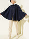 Gömlek Yaka Kemerli Kaşe Panço Lacivert