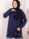 Çiçek Nakışlı Oyşo Tesettür Tunik Lacivert