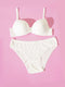 Desteksiz Kendinden Desenli Sütyen Takım Ekru