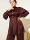 Taş Düğmeli Desenli Jakar İkili Takım Kahve