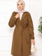 Kruvaze Yaka Kuşaklı Relax Trençkot Taba
