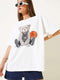 Ayıcıklı Basket Top Baskılı T-shirt Beyaz