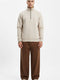 Yarım Fermuarlı İki İpli Erkek Sweatshirt Bej