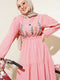 Nakışlı Bel Lastikli Kat Kat Elbise Pudra