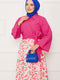 Gömleği Kendinden Kuşaklı Geniş Kol Etekli Takım Pembe
