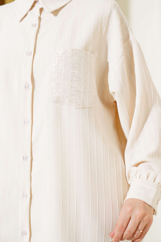 | Name | Pul Cepli Çizgili Gömlek Ekru |