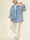 Önü Taşlı Çift Cep Kot Ceket Mavi
