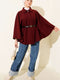 Kemerli Gömlek Yaka Kaşe Panço Bordo