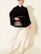 Kemerli Gömlek Yaka Kaşe Panço Siyah