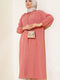 Tahta Düğmeli Ağaç Kabuğu Uzun Gömlek Gül Kurusu