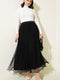 Bel Lastikli Pileli Fırfırlı Tül Etek Siyah