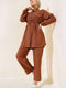Cepleri Taş Detaylı Keten İkili Takım Kahve