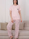 İki Düğmeli Desenli Viskon Pijama Takımı Yavru Ağzı