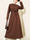 Bisiklet Yaka Bel Tünelli Loyşa Elbise Kahve