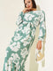 Bürümcük Çiçekli Kuşaklı Elbise Çağla Yeşili