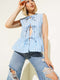 Çizgili Önü Bağlamalı Gömlek Mavi Çizgili
