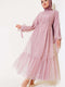 Pullu Kat Tül Elbise Pudra