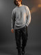 Yıpratma Detaylı Triko Erkek Kazak Gri