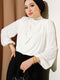 Omuz Vatkalı Degaje Yaka Sandy Bluz Ekru
