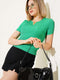 V Aksesuarlı Kısa Kol Bluz Yeşil