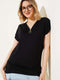 V Yaka Fermuarlı Kısa Kol Bluz Siyah