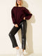 Üç İplik Düşük Kol Basic Sweatshirt Mürdüm
