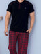 Kare Çizgili Kısa Kol Erkek Pijama Takım Siyah