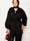 Büzgü Detaylı Beli Tünelli Kimonolu Takım Siyah