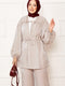 Büzgü Detaylı Beli Tünelli Kimonolu Takım Vizon