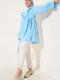 Yaka Fırfırlı Yan İp Bağlamalı Kimono Buz Mavisi