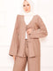 Önden Bağcık Detaylı Pantolonlu İkili Takım Vizon