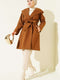 Kuşaklı Kapüşonlu Kaşe Kaban Taba