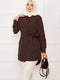 Allerli Yandan Bağlamalı Tesettür Gömlek Kahve