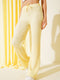 Bel Lastikli Geniş Paça Gofre Pantolon Sarı