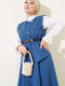 Çapraz Gold Düğmeli Etekli İkili Takım İndigo
