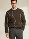 Çizgi Desen Örgü Triko Erkek Kazak Kahve