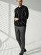 Çizgi Desen Örgü Triko Erkek Kazak Siyah