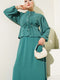 Önü Pileli Bel Tünelli Etekli Takım Yeşil