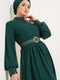 Taş Detaylı Kemerli Şifon Elbise Zümrüt