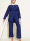 V Yaka İp Kuşaklı İkili Takım Lacivert