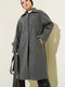 Kuşaklı Düğmeli Kaşe Kaban Füme