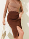 Yırtmaçlı Bel Lastikli Midi Triko Etek Kahve
