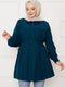 Boydan Gizli Düğmeli Pile Detaylı Tesettür Gömlek Petrol
