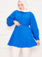 Metal Kalp Figürüyle Bağcıklı Terikoton Gömlek Tunik Saks