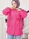 Omuz Detaylı Gizli Düğmeli Tesettür Gömlek Fuşya
